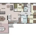 El diseño interior viene con un sofá, así como televisión y TV de pantalla plana con canales vía satélite. Los cuartos de baño están equipados con un inodoro separado, una bañera y una ducha, una secadora y toallas.